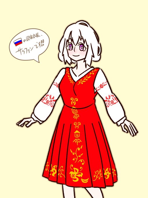 ア一ニャと学ぶロシア語bot בטוויטר 番外編 ロシアの民族衣装にサラファン という服があります 簡単に言えばブラウスの上から着るジャンパースカートだと思ってください 主に女性が着ますね お祝い事の時には装飾をしたりとそれぞれ違った サラファンがありますね