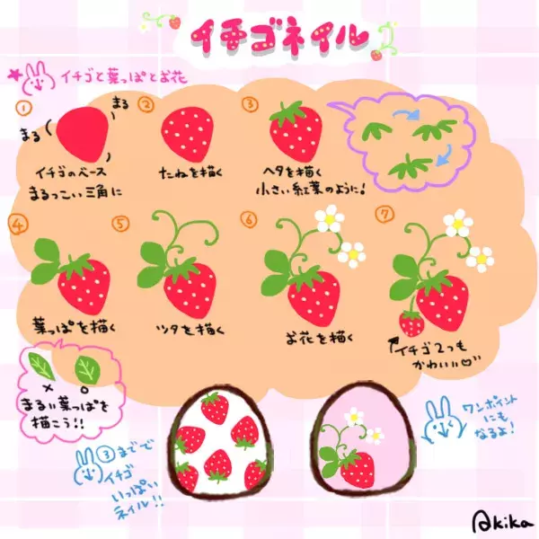 フルーツ柄でも子供っぽくなりすぎない イチゴネイルのやり方 イラスト ローリエプレス